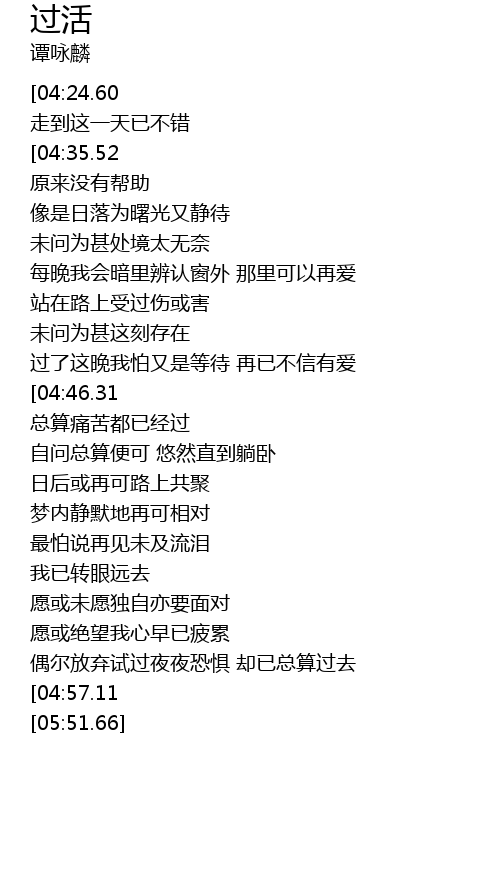 | [05:29.97][04:46.31][04:02.93][02:57.46][01:27.40] | jiu shi na yang jie guo zong suan tong ku dou yi jing guo |