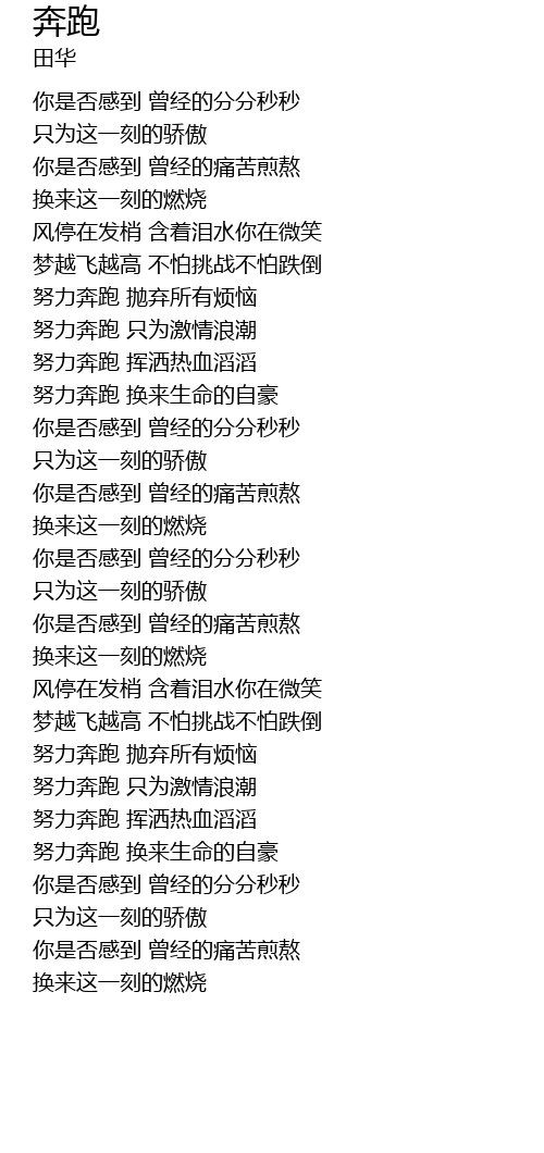 | [01:12.59] | 努力奔跑 换来生命的自豪 |