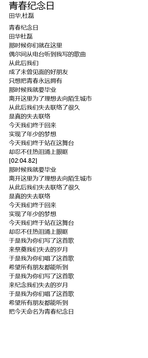 | [03:39.93] | 把今天命名为青春纪念日 |