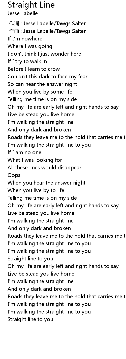 | [00:55.63] | I'm walking the straight line |
