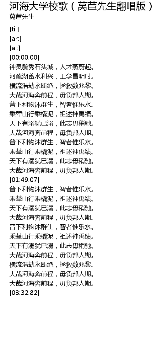 | Song | 河海大学校歌(莴苣先生翻唱版) |