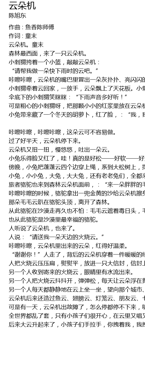 | 云朵机又扭一扭,慢悠悠,吐出一朵云。 | |