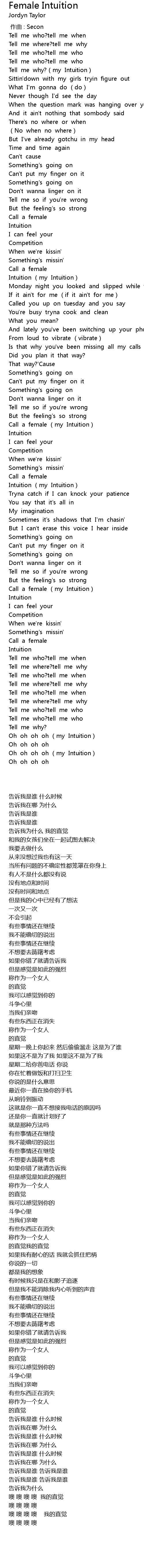 | [02:49.26] | Call a female (my Intuition) |