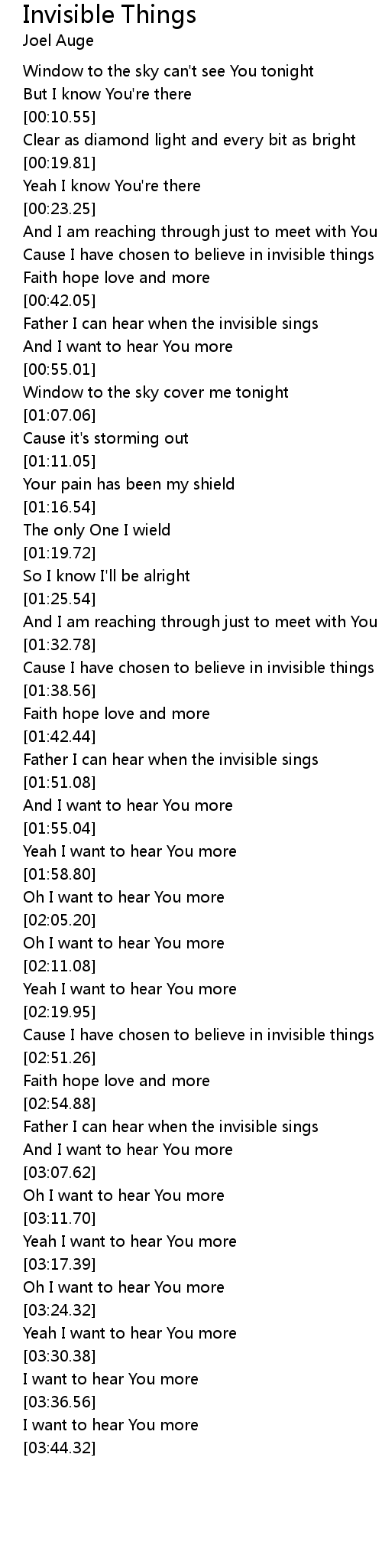 Cause I have chosen to believe in invisible things |