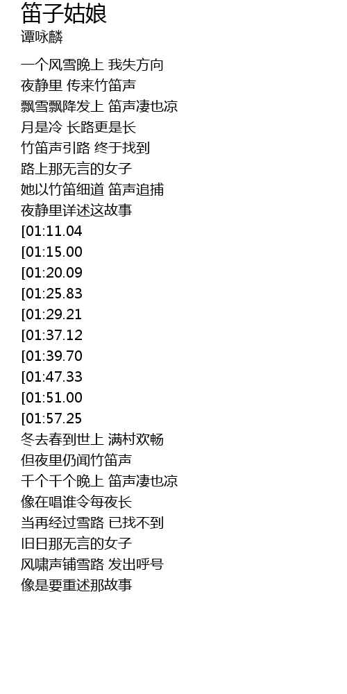 | [00:34.72] | 夜静里 传来竹笛声 |