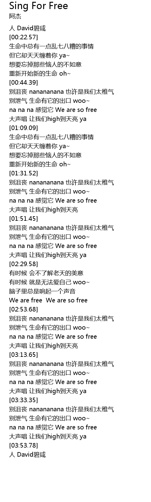 | [00:55.67] | na na na gǎn jué tā We are so free |