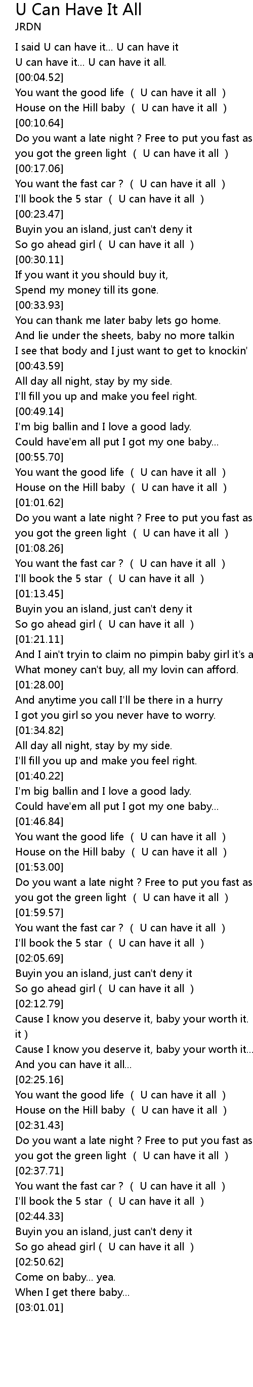 | [00:03.47] | U can have it... U can have it all. |