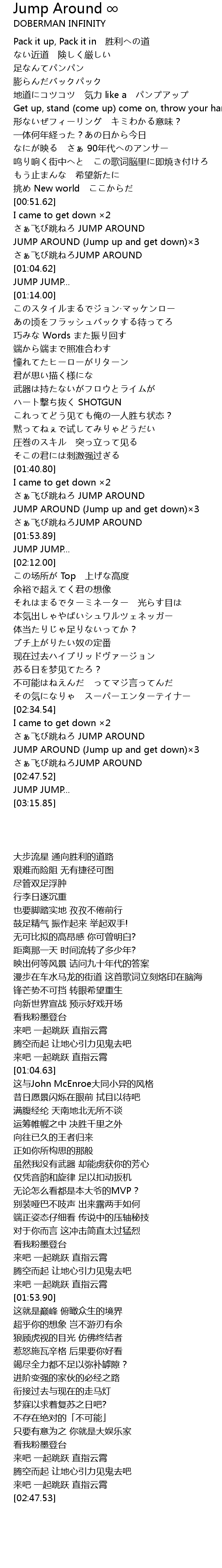 | [02:36.85] | さぁ飞び跳ねろ JUMP AROUND |