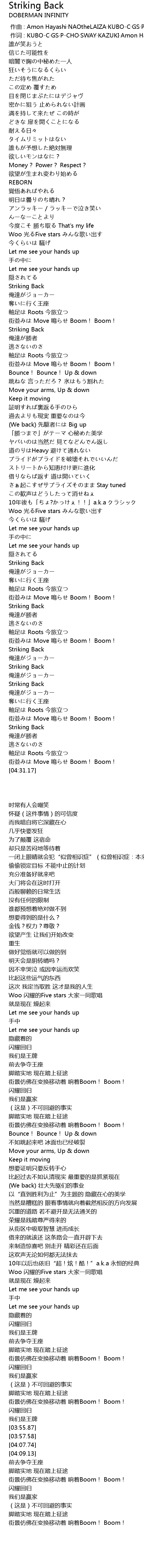| [00:00.19] | 作词 : KUBO-C·GS·P-CHO·SWAY·KAZUKI·Amon Hayashi |