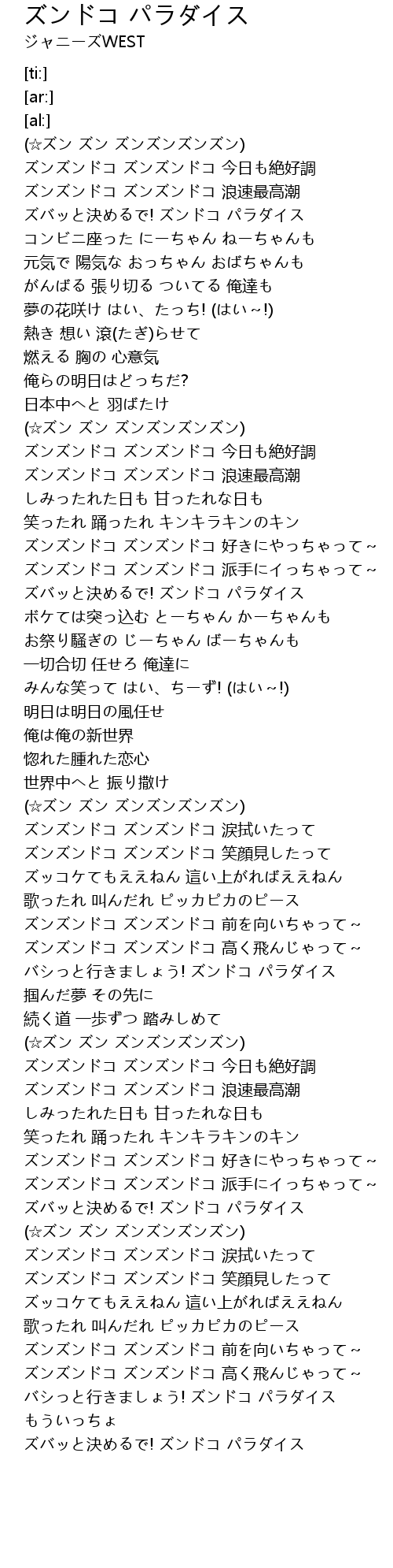 ズンズンドコ ズンズンドコ 前を向いちゃって~ |