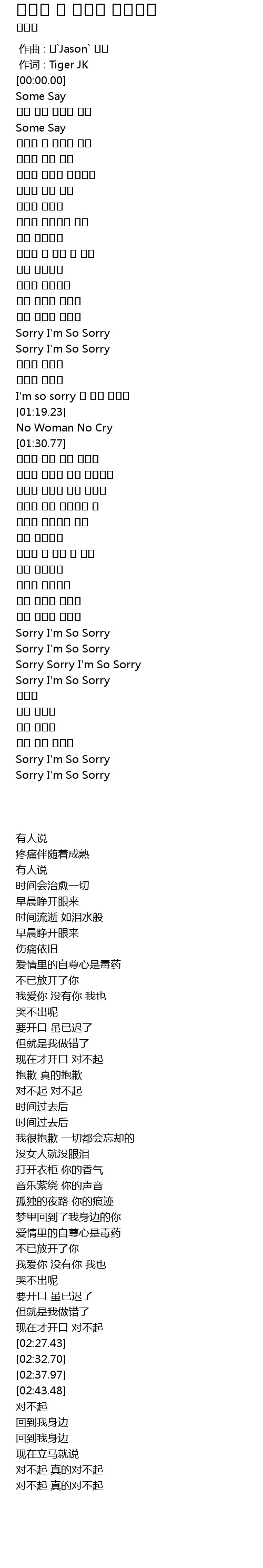 | [02:27.43] | Sorry I' m So Sorry |