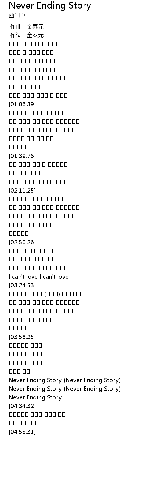 | [04:24.53] | Never Ending Story Never Ending Story |