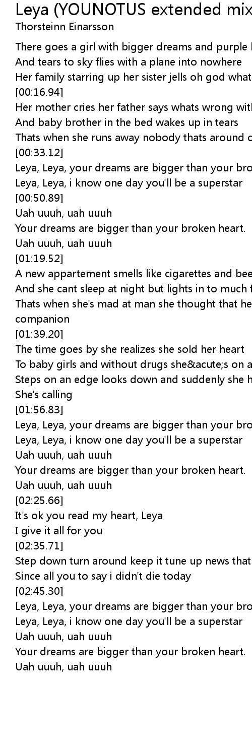 [02:46.46] Leya, Leya, your dreams are bigger than your broken heart