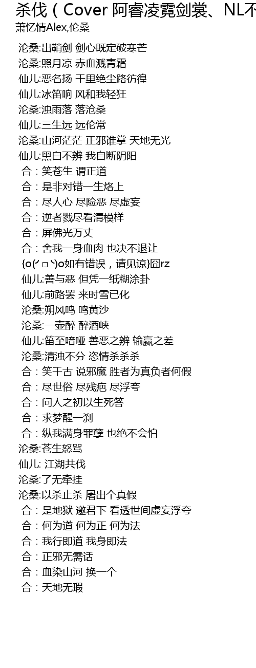 | [02:22.000] | 沦桑:清浊不分 恣情杀杀杀 |