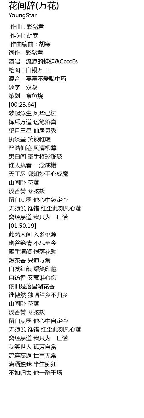 | [00:18.64] | 演唱:流浪的蛙蛙&CcccEs |