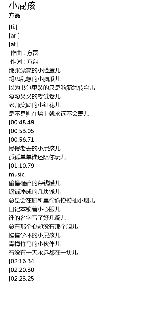 | [02:31.92][00:48.49] | 慢慢学坏的小屁孩儿 |