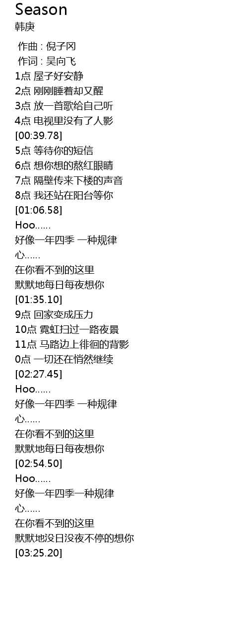 | [02:57.68] | 好像一年四季一种规律 |
