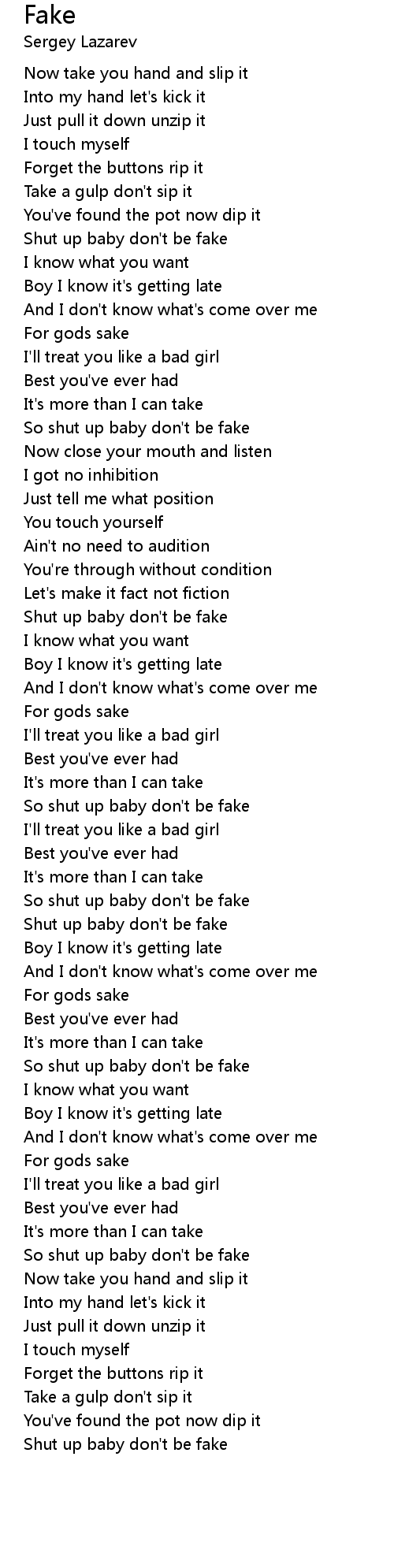 So shut up baby don't be fake |