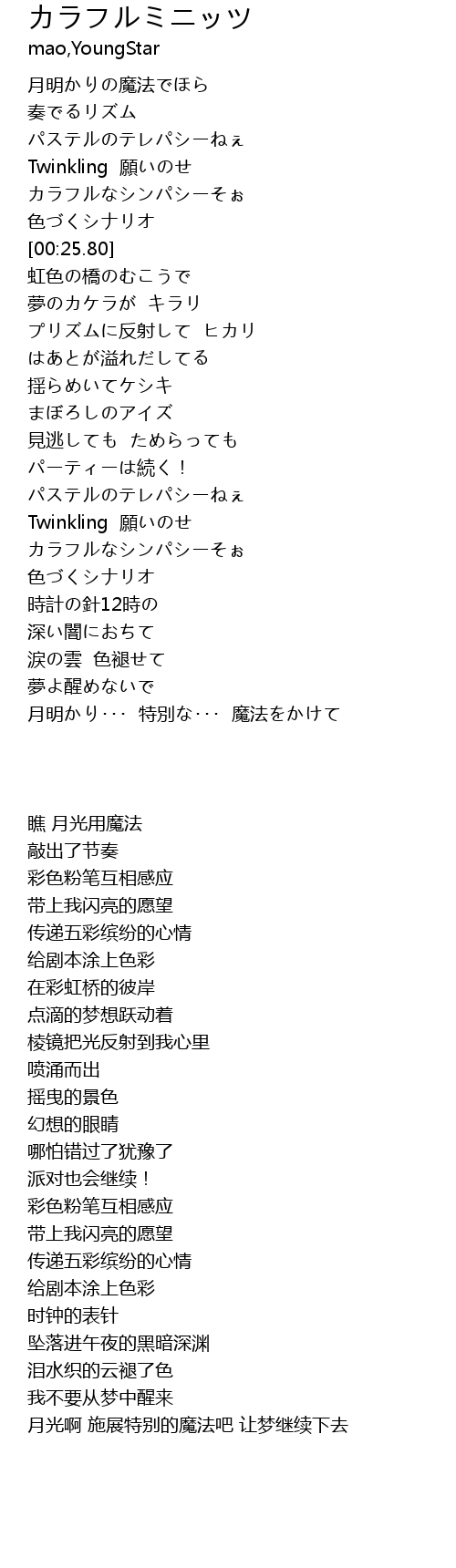 | [00:19.12] | カラフルなシンパシーそぉ |