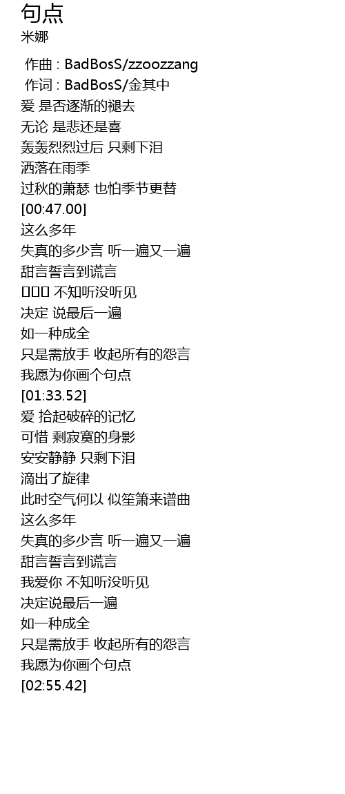 | [00:01.00] | 作词 : BadBosS/金其中 |