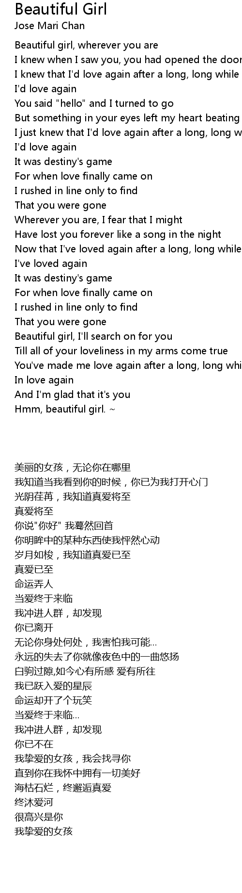Beautiful girl, I'll search on for you |