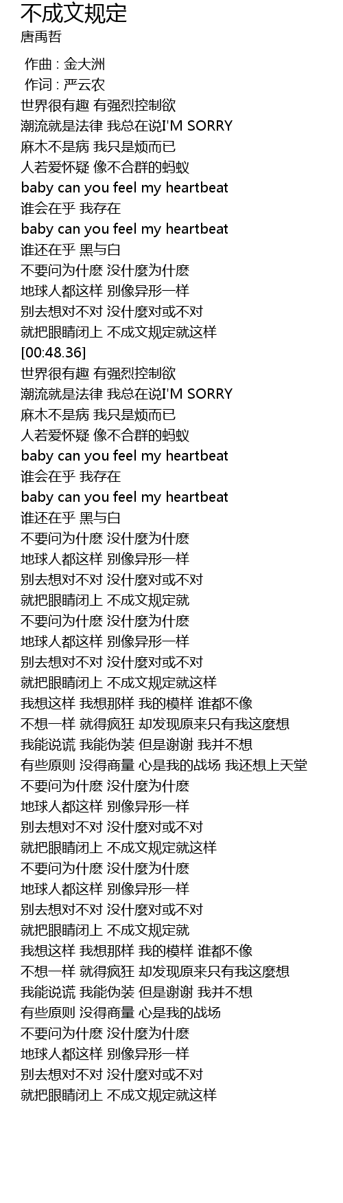 | [01:48.12] | jiù bǎ yǎn jīng bì shang bù chéng wén guī dìng jiù zhè yàng |