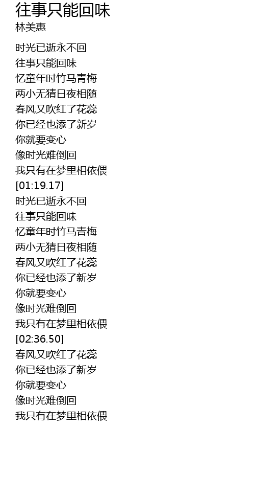 | [01:41.58] | 往事只能回味 |