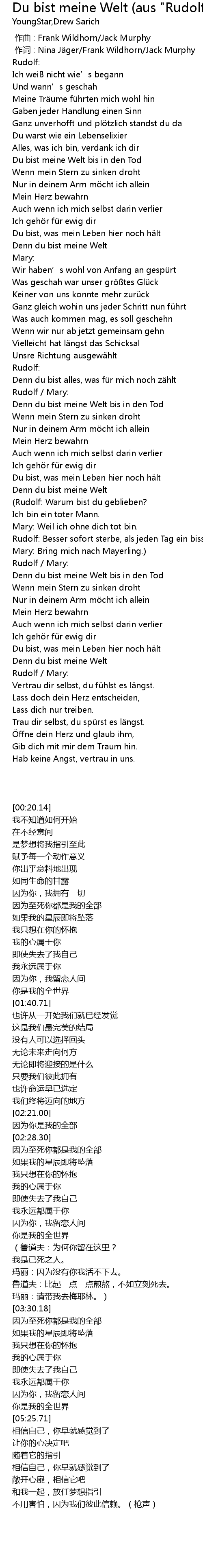 | [02:28.60] | Denn du bist meine Welt bis in den Tod |