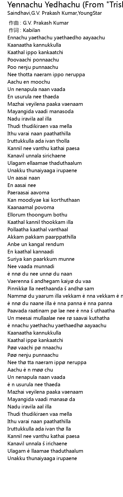 | [00:00.00] | zuò qǔ : G. V. Prakash Kumar |