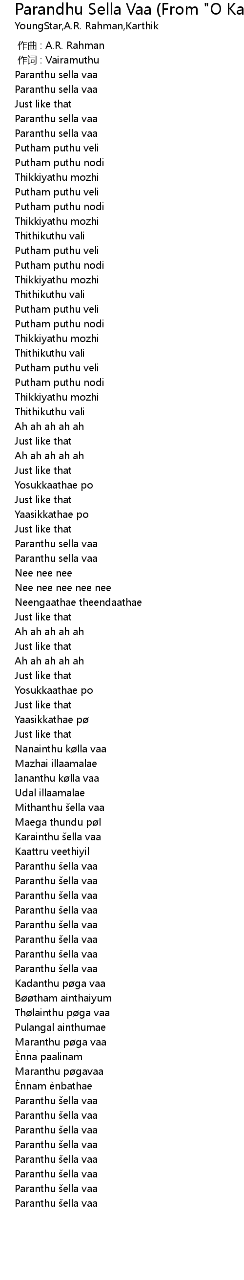 | [00:00.00] | 作曲 : A.R. Rahman |