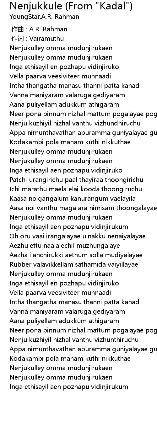 | [00:00.00] | zuo qu : A. R. Rahman |