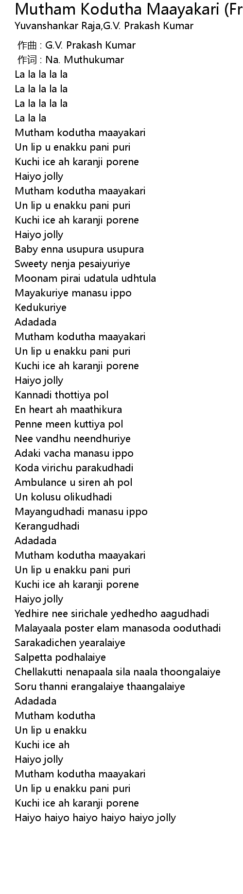 | [00:00.00] | 作曲 : G.V. Prakash Kumar |