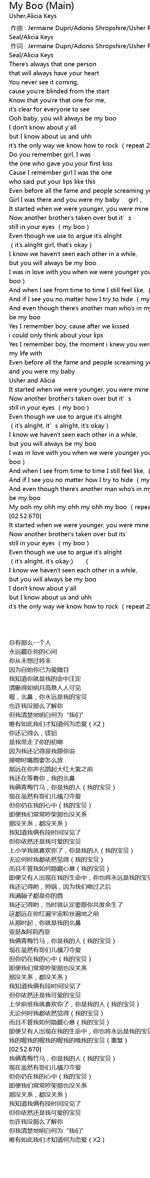 | [02:48.050] | My ooh my ohh my ohh my ohh my boo repeat |