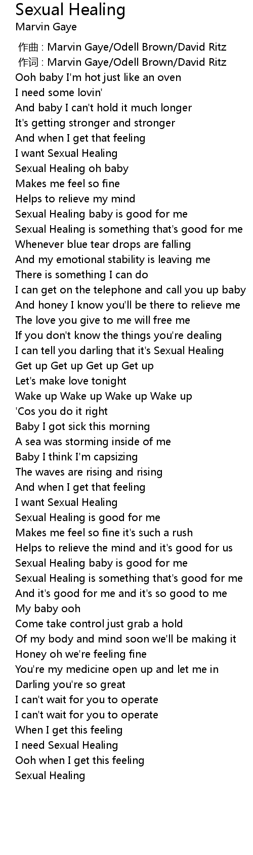 | [01:03.11] | Sexual Healing is something that' s good for me |