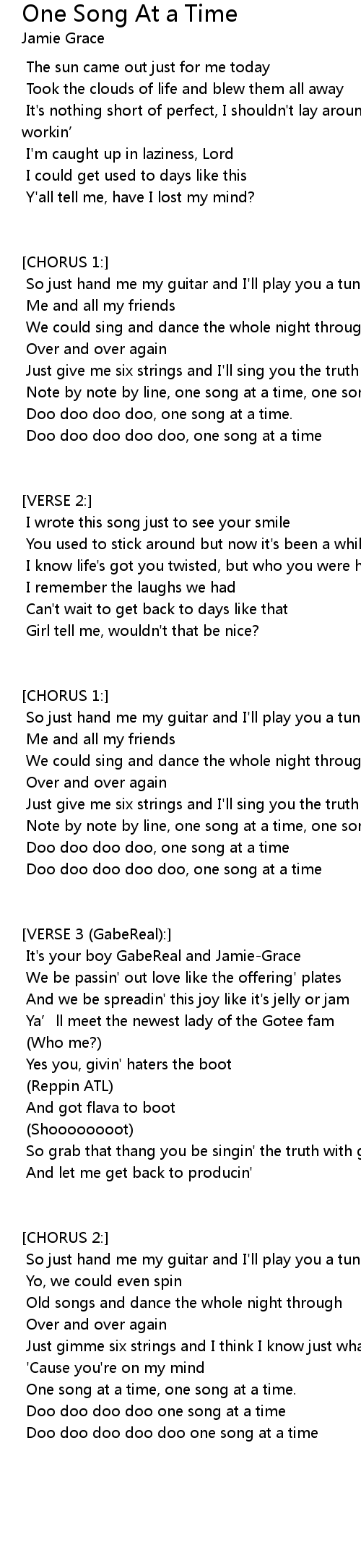 | Doo doo doo doo doo one song at a time |
