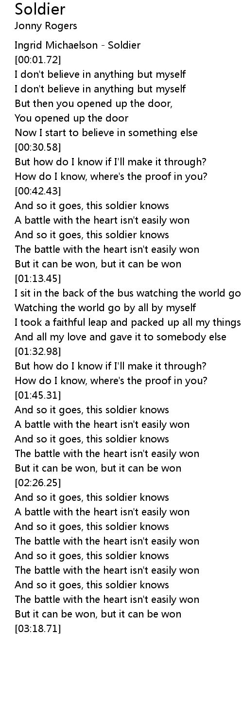 And so it goes, this soldier knows |
