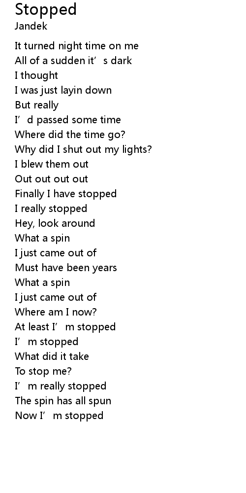 | Now I' m stopped |