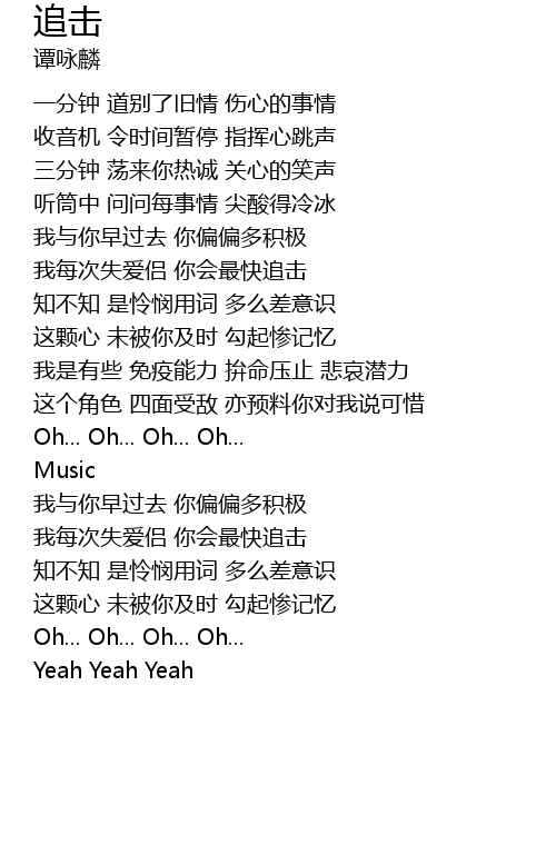 | [01:00.900] | 我每次失爱侣 你会最快追击 |