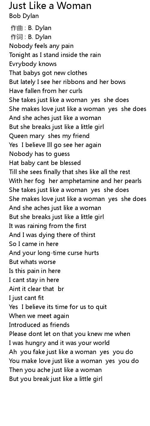 | [00:58.44] | And she aches just like a woman |