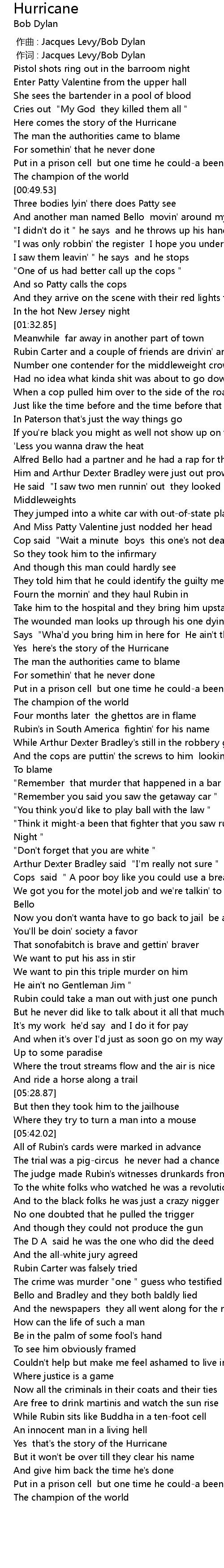 | [03:16.56] | Yes here' s the story of the Hurricane |