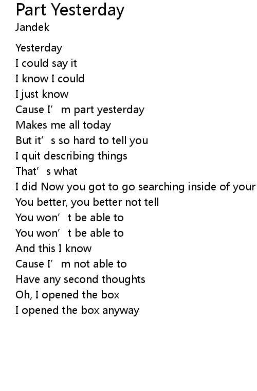 | Cause I' m part yesterday | |