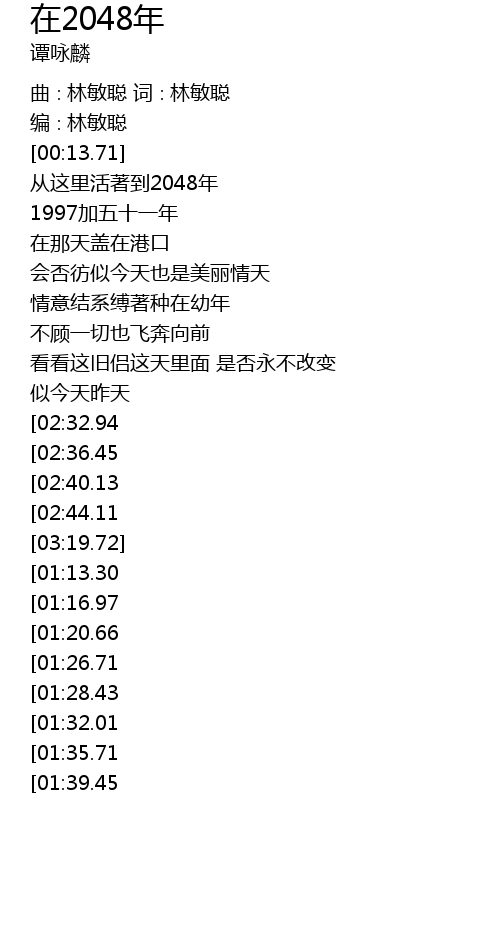 | [02:17.25][01:13.30] | 从这里活著到2048年 |