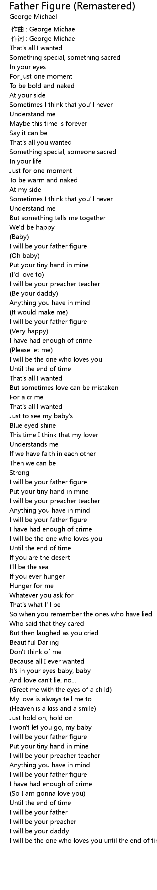 | [00:01.00] | 作词 : George Michael |