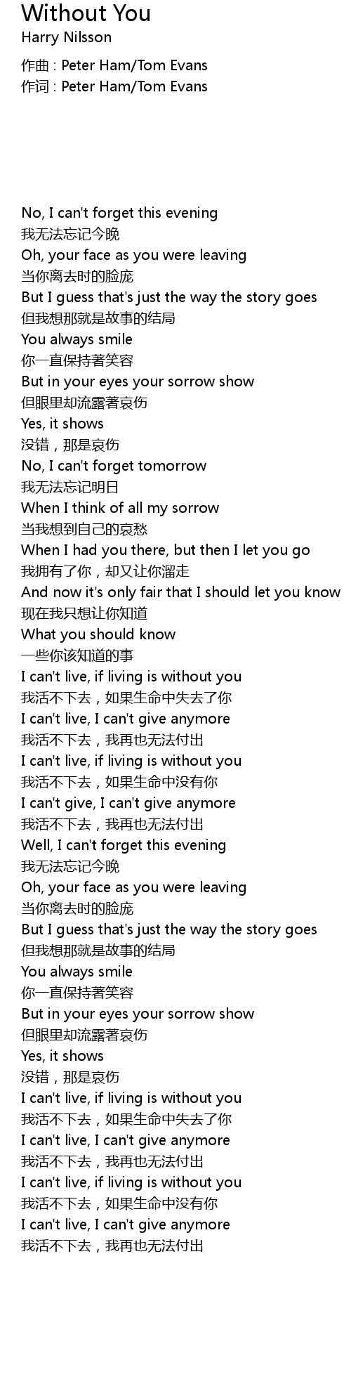 | Song | Without You |