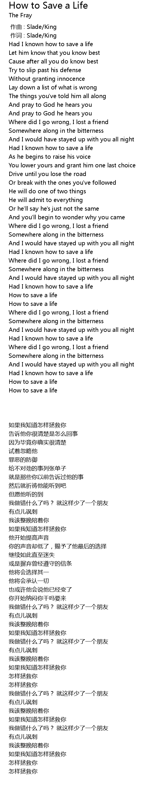 | [01:37.13] | Where did I go wrong, I lost a friend |