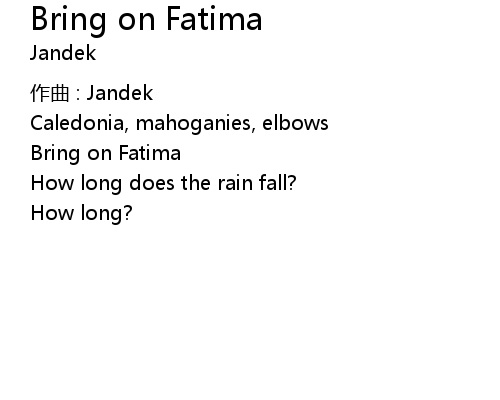 | Song | Bring on Fatima |