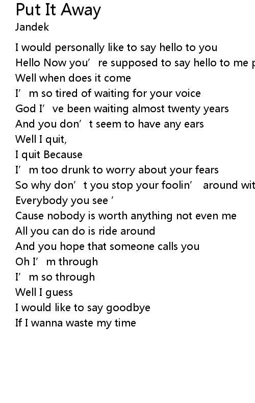 | Song | Put It Away |