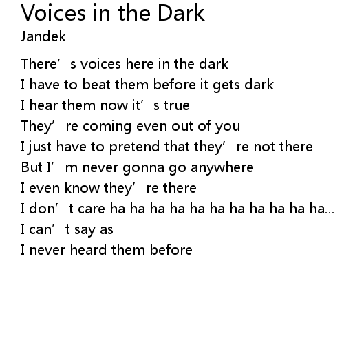 | There' s voices here in the dark | |