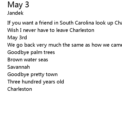 | Song | May 3 |