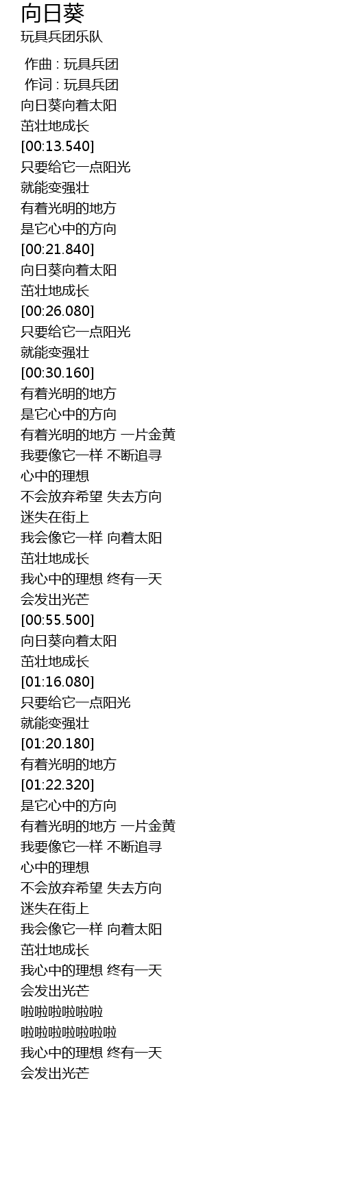 | [01:13.120] | xiàng rì kuí xiàng zhe tài yáng |